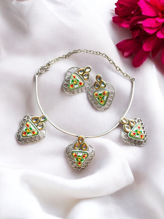 Afreen Silver Replica Necklace Set