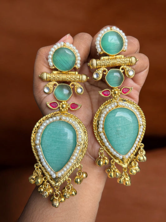Jasmine Big Monalisa Stone Brass Earrings