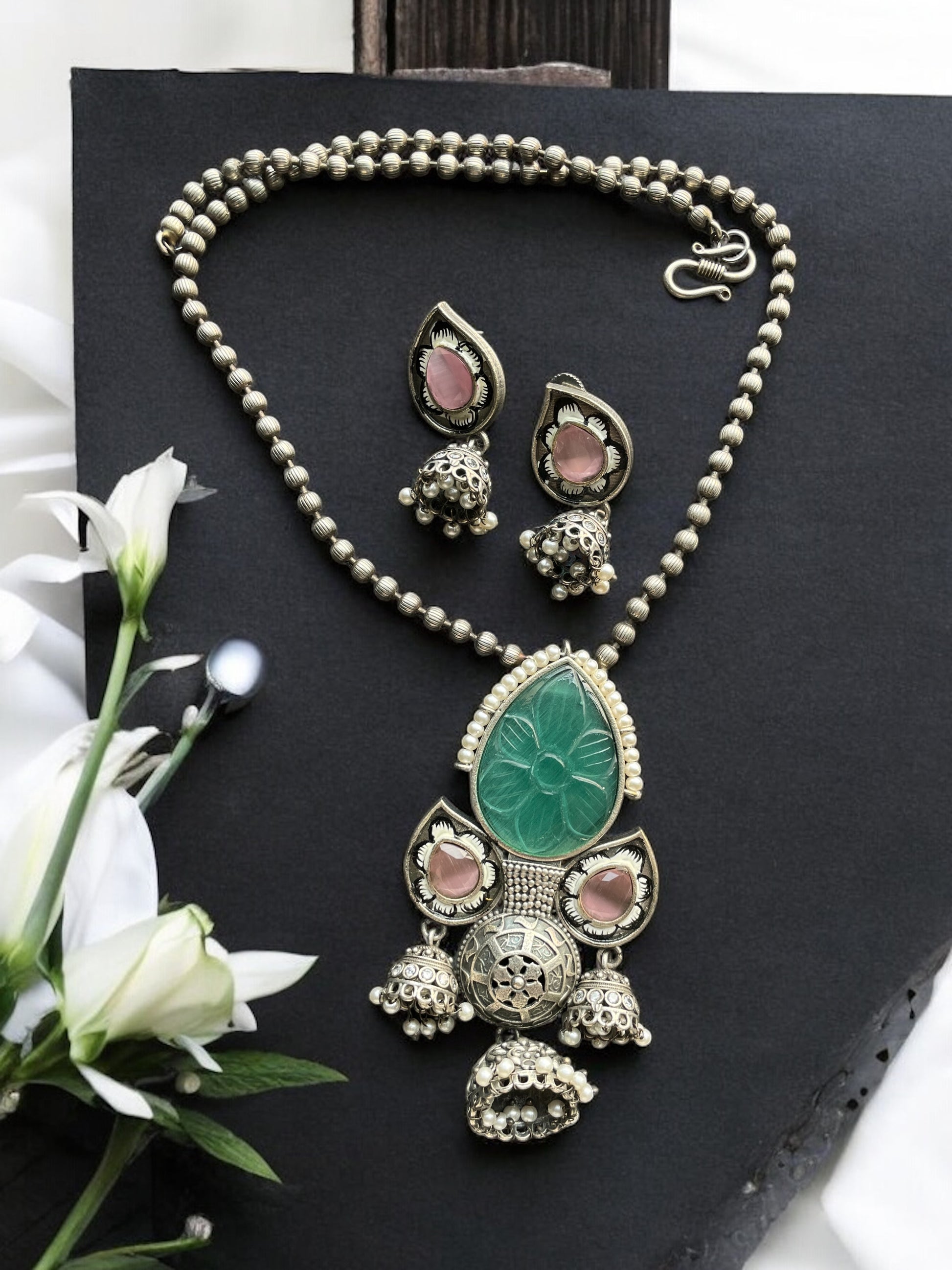 Jia Monalisa Necklace Set – Big Original Monalisa Stone with Meenakari Work