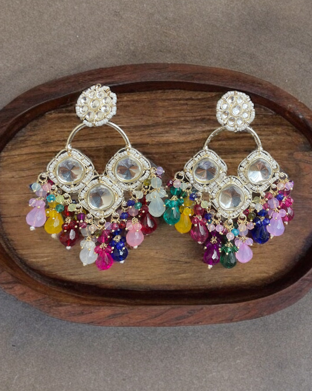 Polki Kundan Earrings with Multicolored Crystal Beads