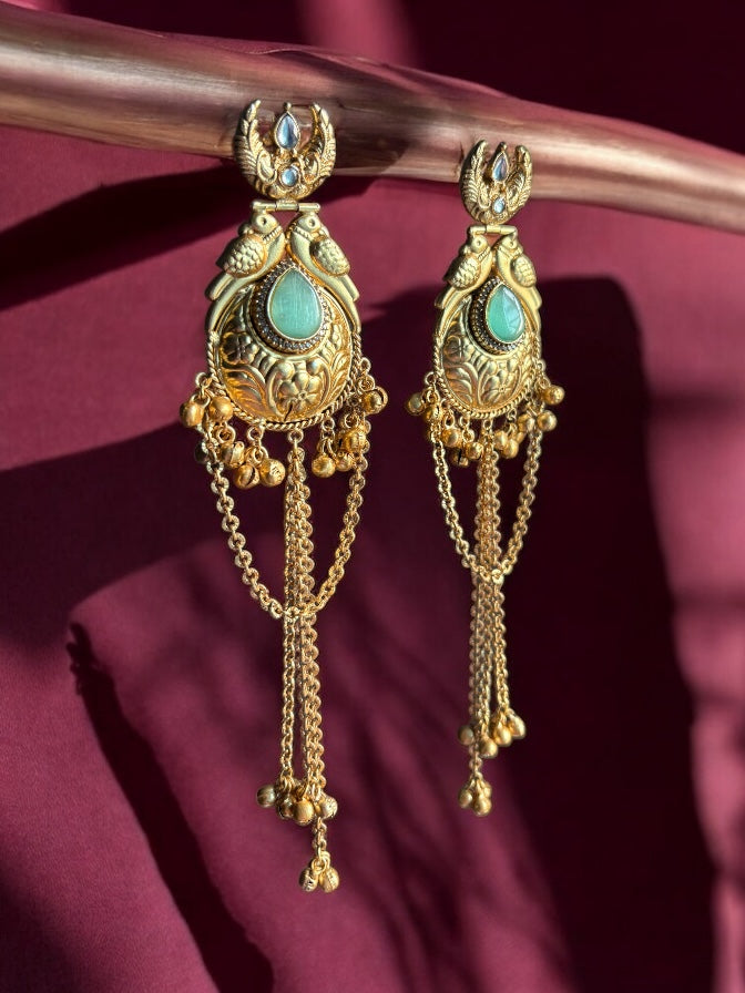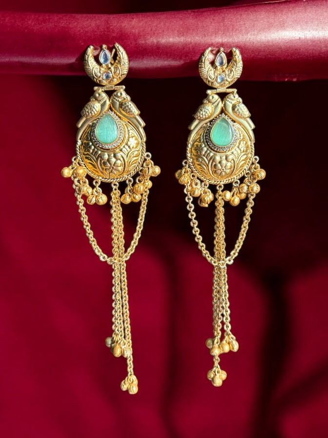 With Golden Brass Base | Premium Monalisa Stone Work | Long Elegant Hangings
