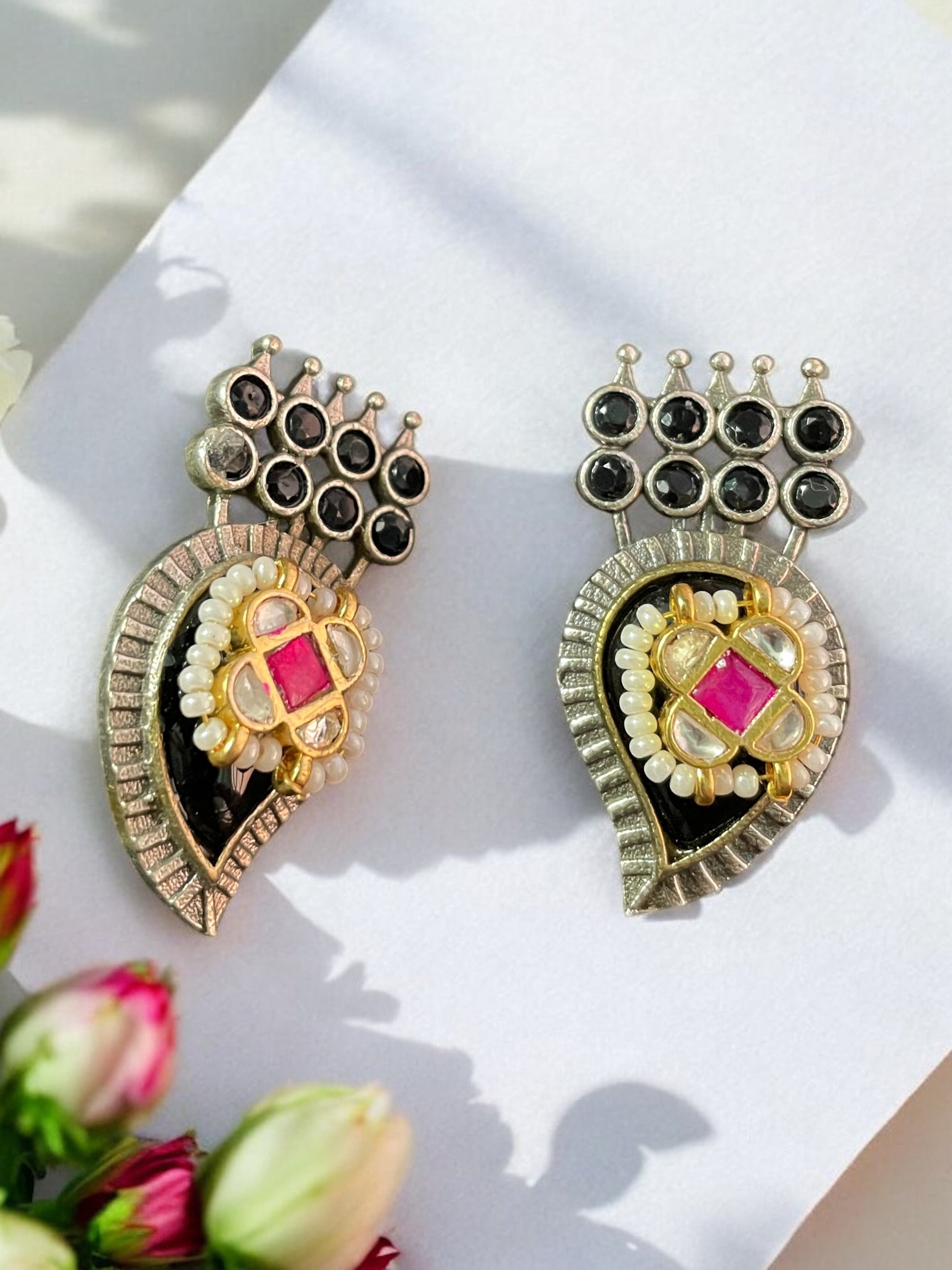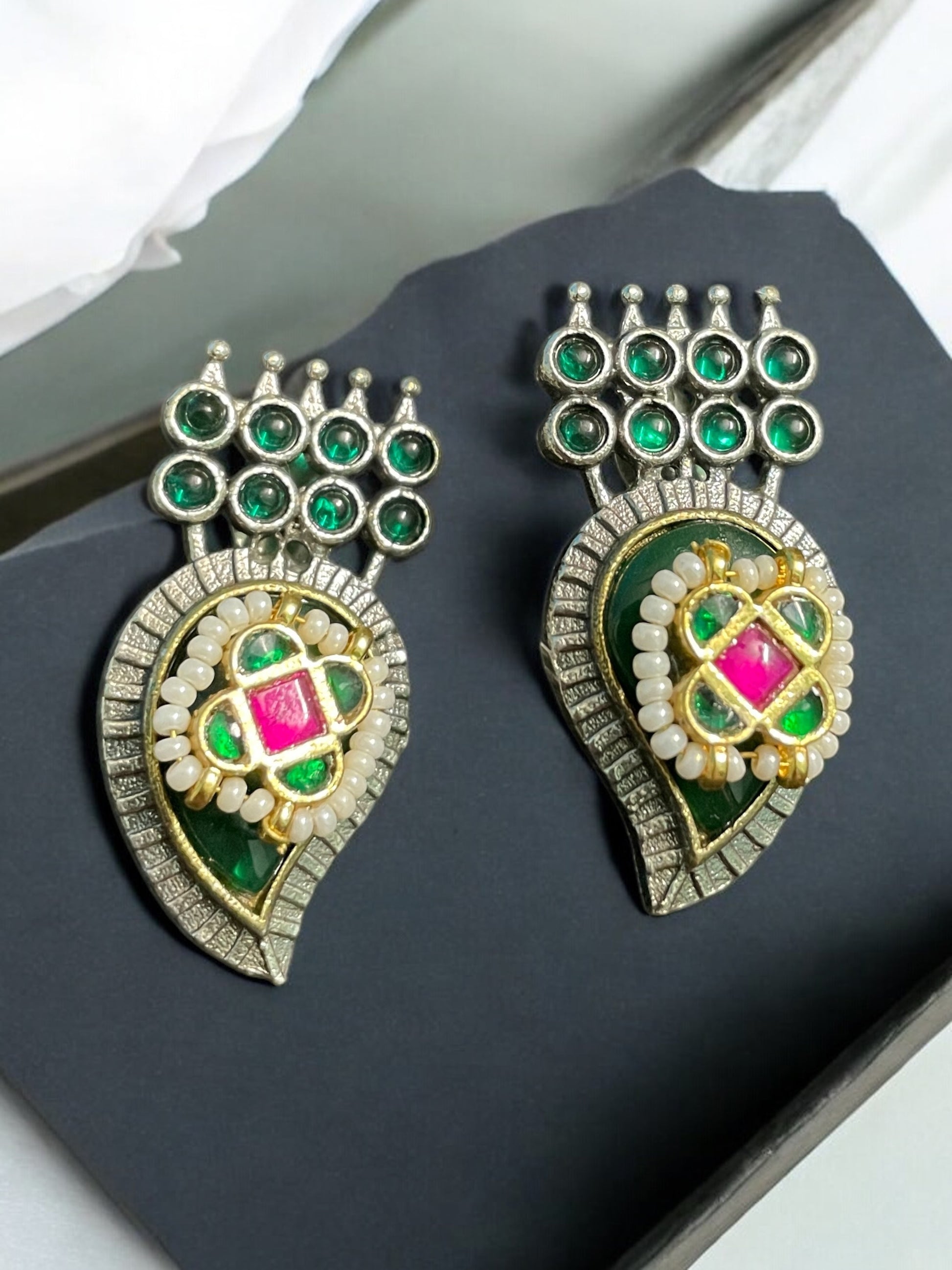 Make a royal statement with the Mridula Silver Pacchi Kundan Earrings with Original Pacchi Kundan & Monalisa Stone Work, a stunning fusion of tradition and contemporary luxury.