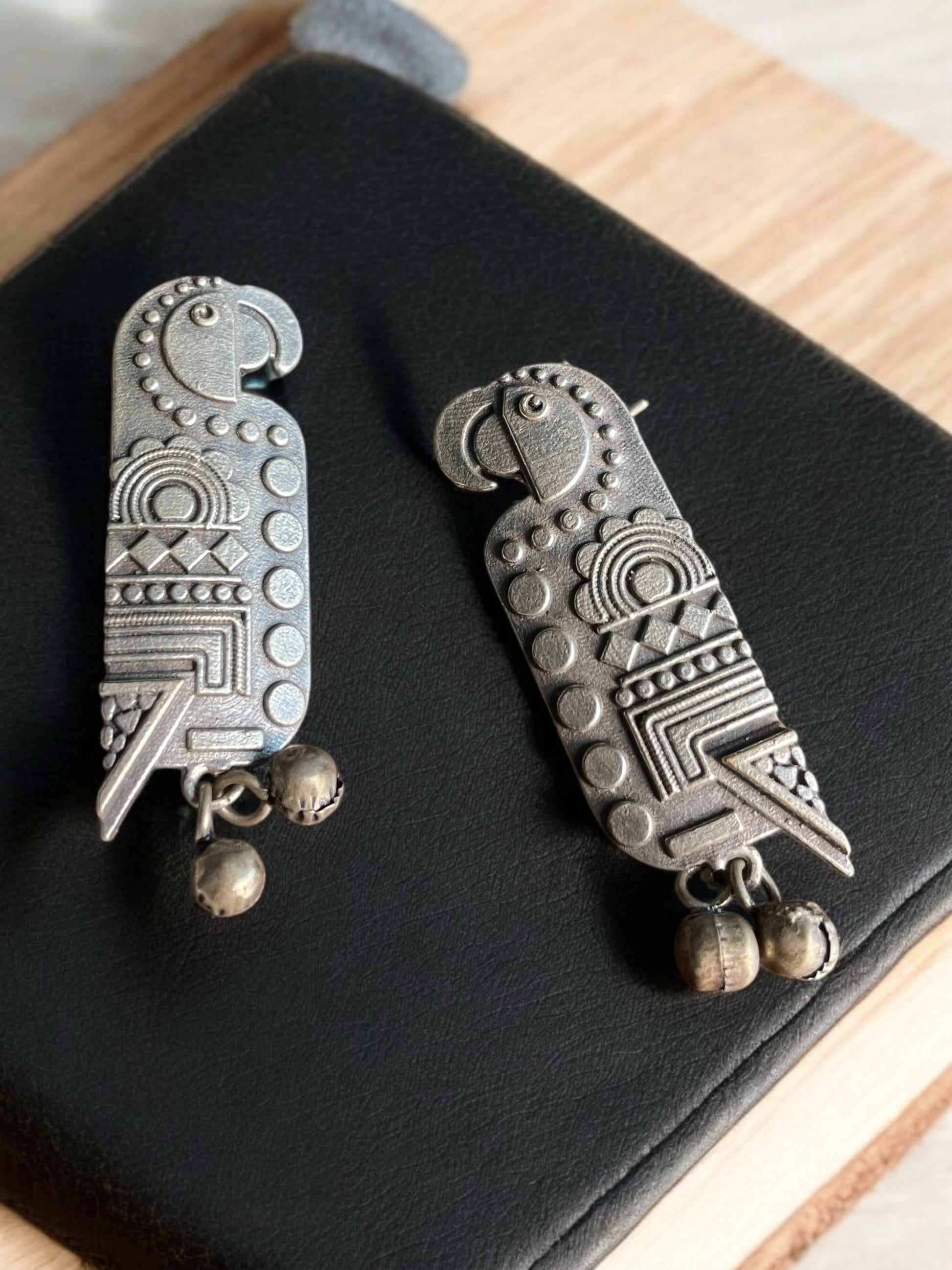 Parrot-shaped famous and viral silver replica earrings that embody a playful yet elegant design. Crafted with intricate detailing, these earrings capture the vibrant essence of parrots, making them a fun and eye-catching accessory. Lightweight and comfortable, they are perfect for both casual and special occasions, adding a unique flair to any outfit. Elevate your jewelry collection with these trending earrings that celebrate creativity and individuality, making a bold statement wherever you go.