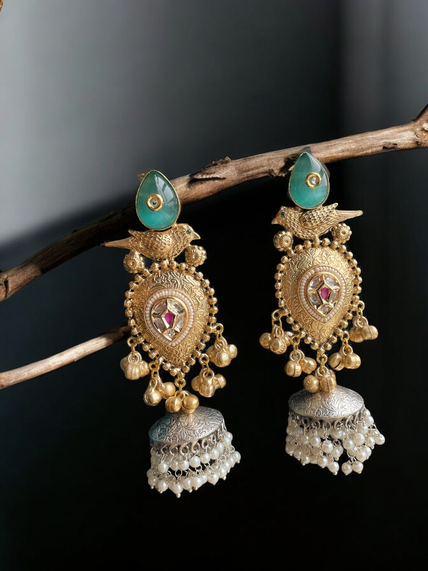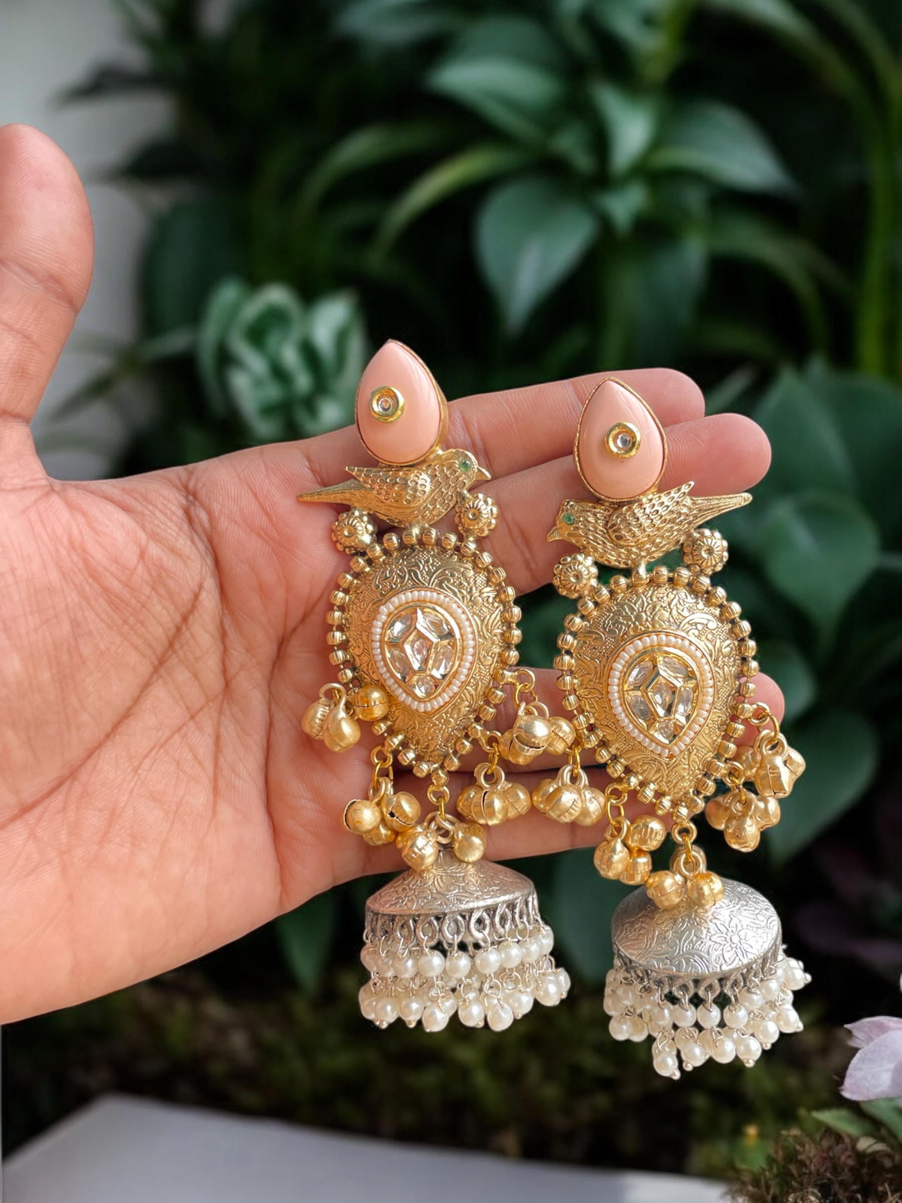 • Design: Classic jhumka shape with intricate detailing